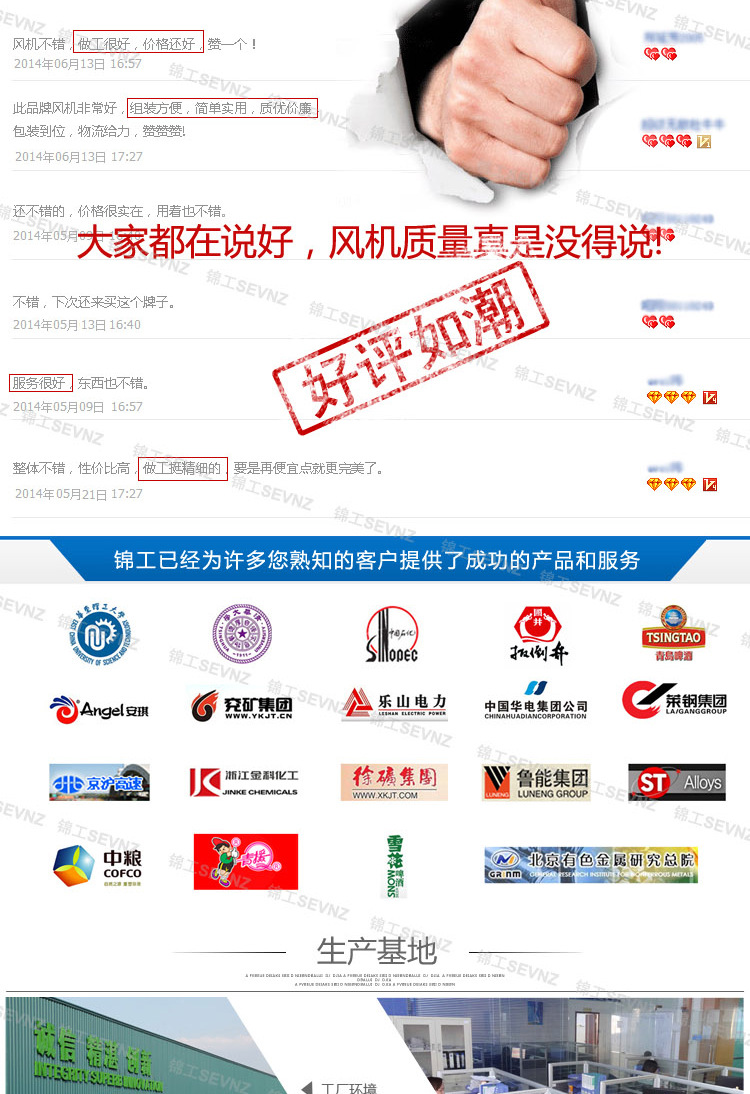 1、鑄件用樹脂砂工藝鑄造,由山東輕工機械廠鑄造車間生產,錦工風機鑄件質量有充分的保證。