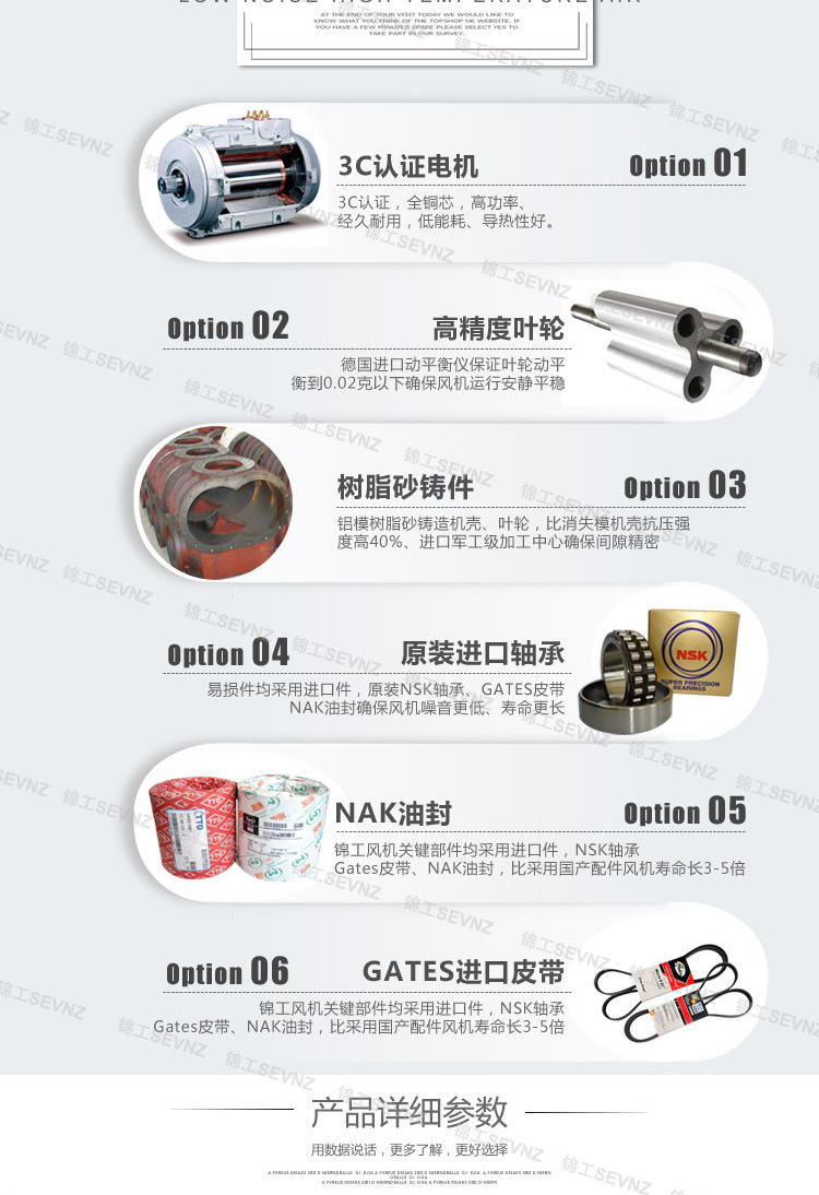 8、風機齒輪采用20CrMnTi經滲碳處理,磨削加工,精度達五級,齒面更耐磨,能明顯降低齒輪噪音。