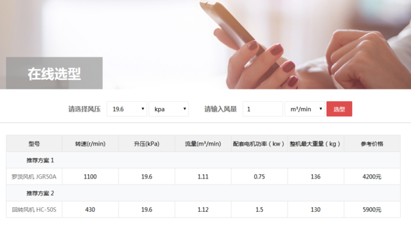 此外,還可以通過風機選型系統查詢回轉風機價格,如下圖客戶僅需輸入風量、選擇風壓,就可以方便、快速、準確、可靠地進行羅茨鼓風機、回轉式鼓風機等各類容積式風機的選型和價格查詢工作。風機選型系統地址:http://www.taifenggroup.cn/search.php